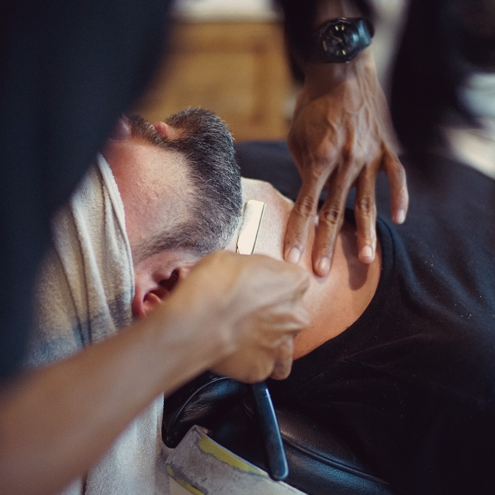 Na het scheren brengen wij verfrissende cologne aan op je gezicht.